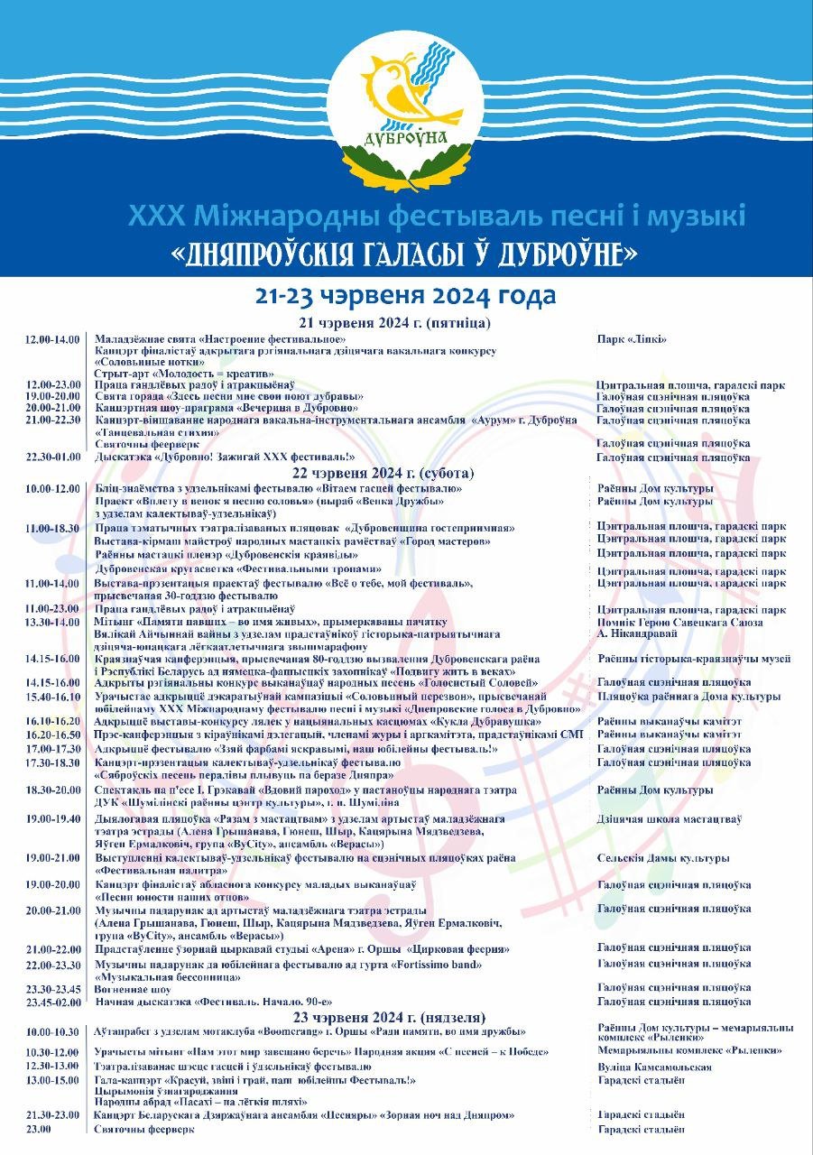 21-23 июня 2024 года в г. Дубровно пройдет XXX Международный фестиваль песни и музыки "Днепровские голоса в Дубровно".